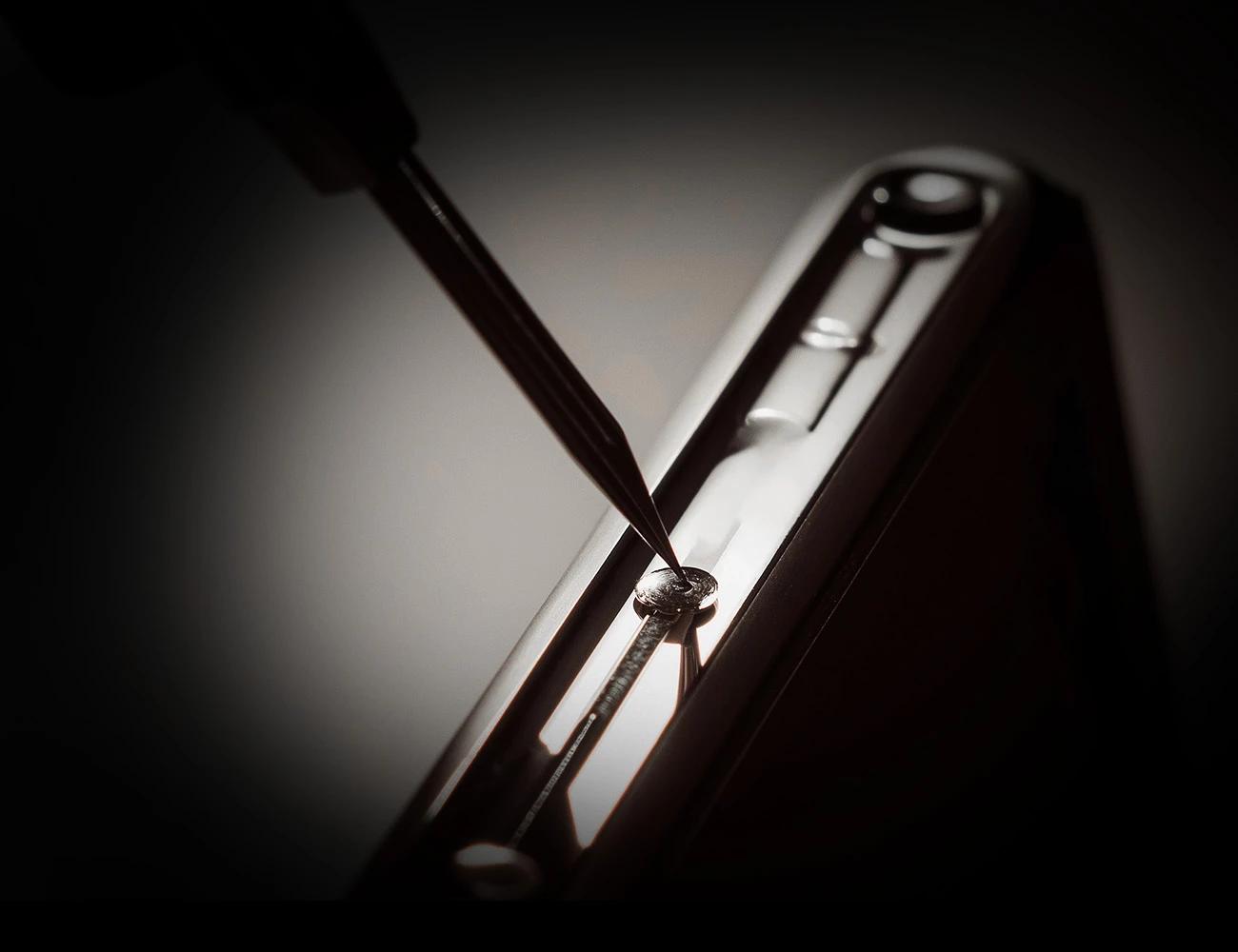 Perfect poise. Swiss hinge.